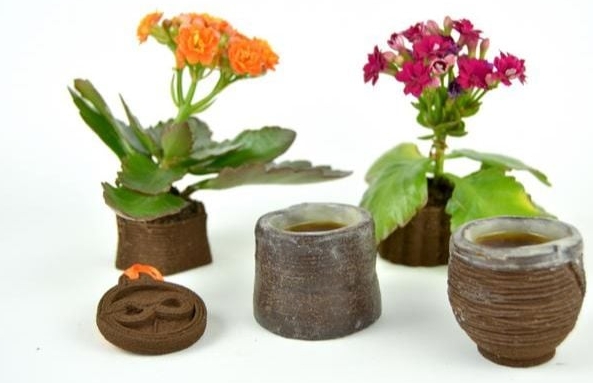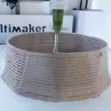 3D打印咖啡渣材料是將咖啡渣與黃原膠和纖維素膠(食品中常見的植物增稠劑)等成分混合后而形成的3D 打印的混合物。然后,利用改良過的3D打印機(jī)通過層層堆積制作成一個(gè)個(gè)堅(jiān)固耐用的作品。