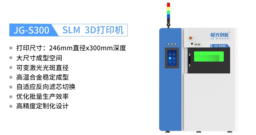 極光創新SLM成型系列JG-S180、JG-S300、JG-S255等金屬3D打印機均具備多種金屬材料打印能力,不僅可以打印鋁合金材料,還可成功打印不銹鋼、高溫合金、鈦合金、高熵合金等金屬材料,并且可以直接制成傳統工藝方法難以制造甚至無法制造的復雜金屬終端產品,致密度最高可達99.98%,可有效提高金屬材料的利用率,降低制造成本。